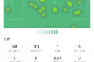 哈兰德本场数据:4次射门打进1球,4次对抗3次成功,获评7.9分