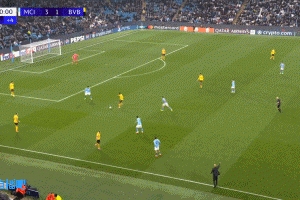 曼城4-1多特蒙德!谢尔基突破至禁区,起脚远射皮球折射入网