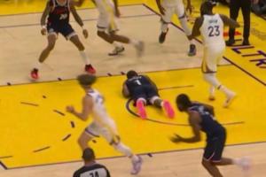 GIF-哈登突破摔倒 摆出睡觉姿势