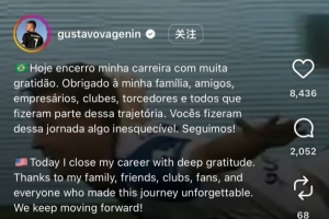 古斯塔沃写道:“今天,我满怀感恩结束自己的职业生涯。感谢我的家人、朋友、俱乐部以及所有支持我的人们。继续前行!”