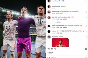 下半场少打一人,8次扑救守住胜利!诺伊尔社媒晒庆祝照:团队!