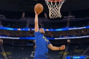 金州拉文名不虚传!库里热身自抛自扣完成单手扣篮 这一扣打几分