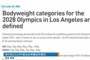 洛杉矶奥运会举重级别确定,男、女各6个小项,产生12枚金牌