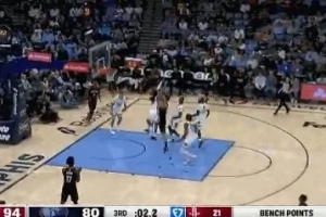 神兵天降!奥科吉连中3记三分 帮助火箭一举将分差拉开到20分以上