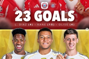 凯恩15球、迪亚斯4球、奥利塞4球